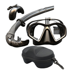 Venta al por mayor Wet Go-Pro Máscara de buceo de bajo volumen Máscara de buceo en apnea de vidrio templado Máscara DE BUCEO tipo J Juego de esnórquel con soporte de cámara Negro